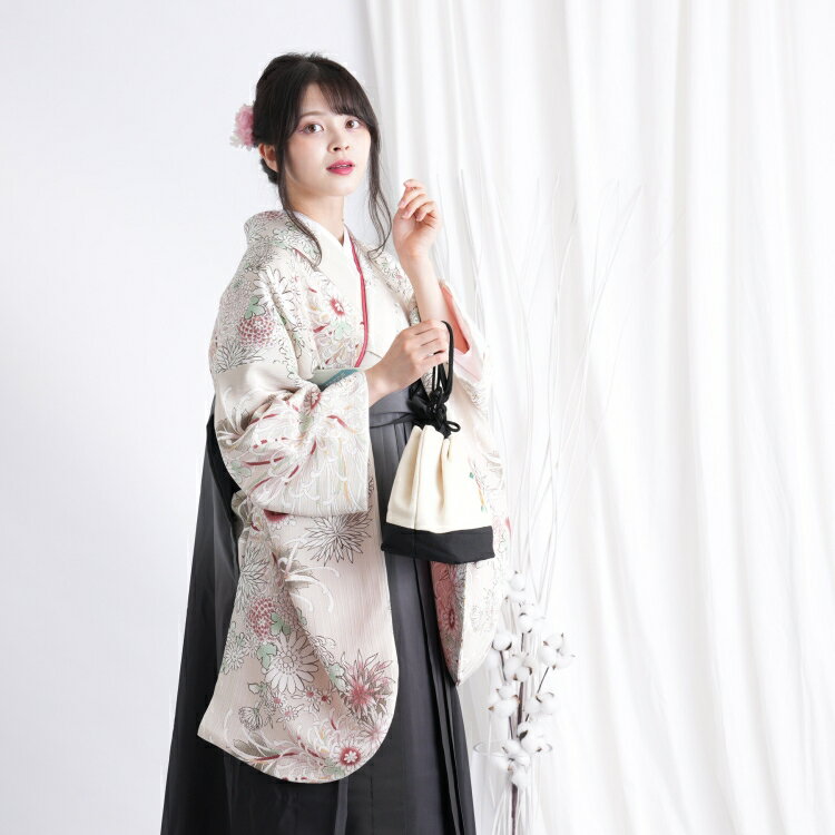 【レンタル】ひよこ商店 往復送料無料 2尺袖 着物 袴 16点セット 袴91cm(身長153-158cm) 袴セット 国内染色 国産生地 卒業式 大学生 専門学生 花柄 女性 ベージュ女性 ladies オレンジ 緑 グリーン 菊 きく ニュアンス くすみカラー モダン