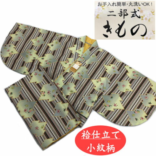 二部式 着物 洗える 袷 緑地 普段着 女性用 レディース 母の日 敬老の日 誕生日 プレゼント ギフト 贈り物 オールシーズン ユニフォーム カジュアルウェアー 簡単二部式着物 洗える着物 仕立て上がり着物 プレタ着物 二部式きもの 単品 帯不要
