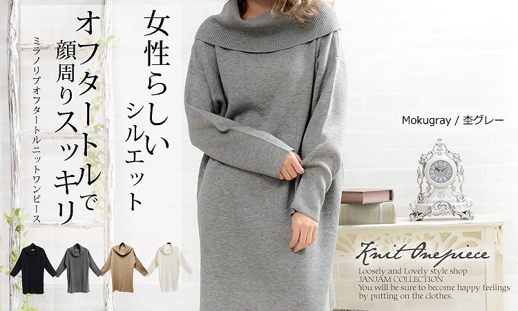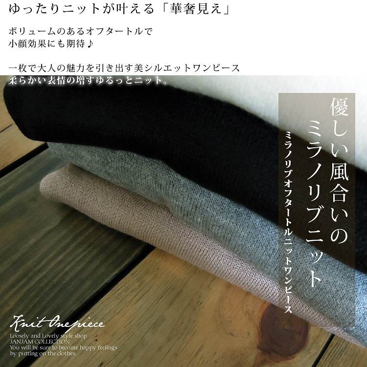 優しく柔らかな風合いのミラノリブニットのオフタートルニットワンピース。
